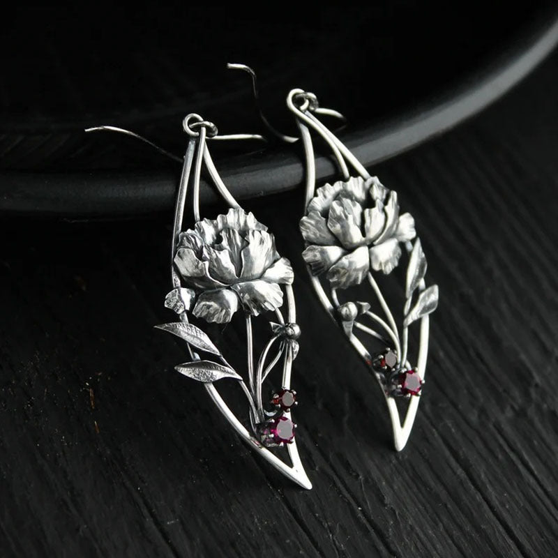 Boho Øreringe Sølvbelagte Rose med Røde Zirconia