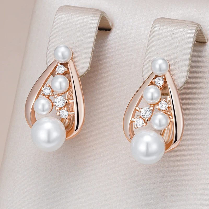 Elegante guldbelagte, skinnende perlebesatte øreringe