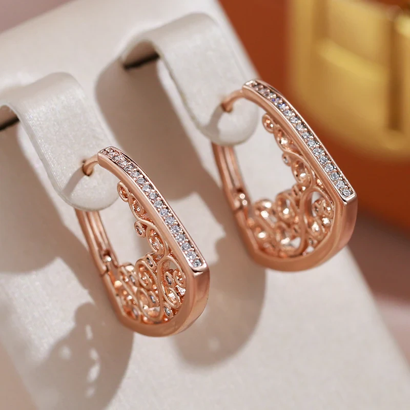 Elegante, skinnende øreringe med en hul kurv af guld og zirkonia