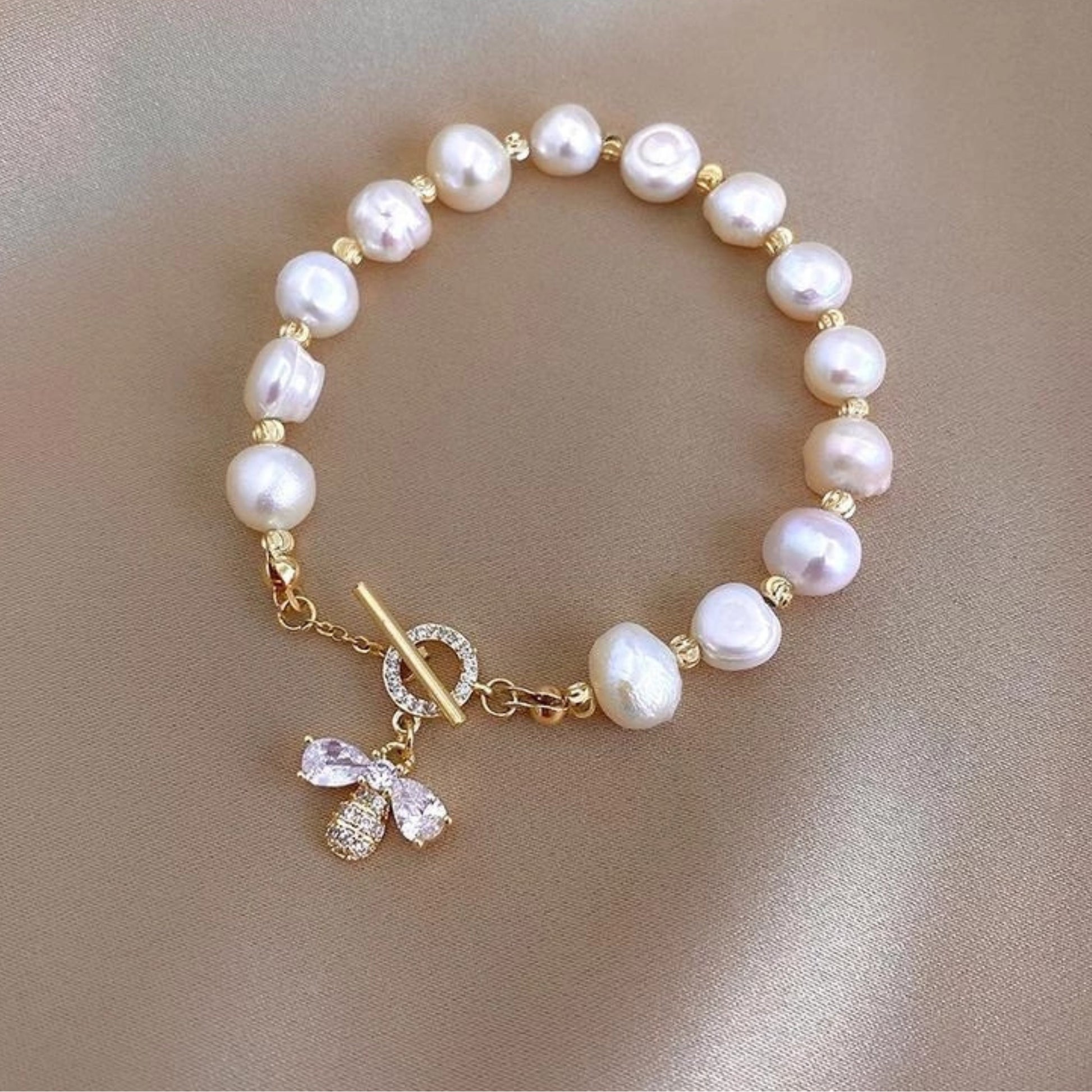 Justerbart bi-armbånd med perler i guld