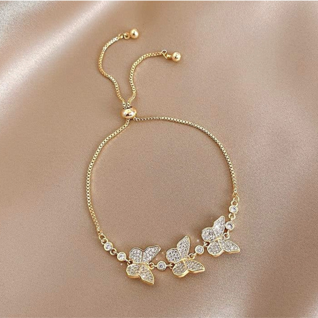Justerbart tredobbelt butterfly-armbånd med zirkoner i guld