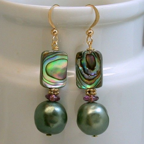 Kromatiske øreringe med grønne vintageperler