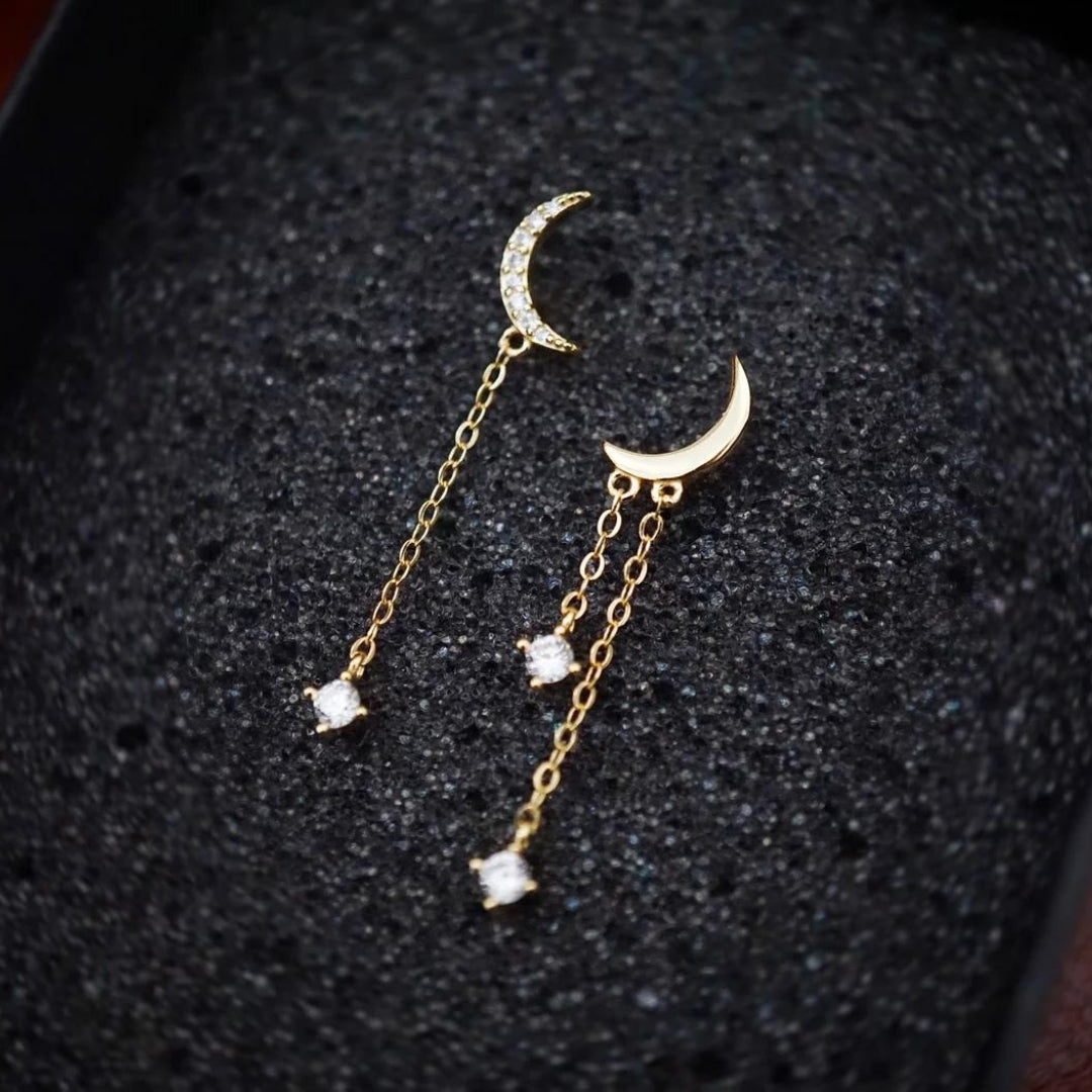 Øreringe med månen og stjernen vedhæng med zirkonia i guld