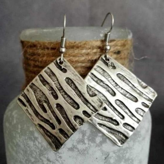 Sølvbelagte firkantede boho-øreringe
