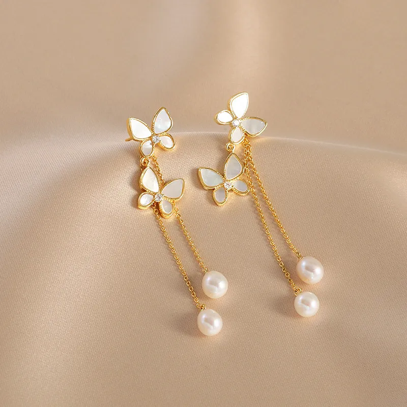 Sommerfugleøreringe med vedhæng og perler