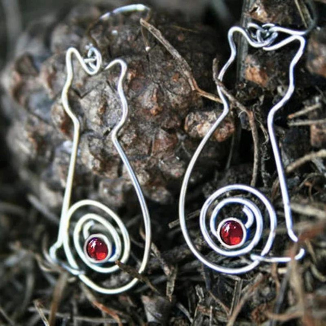 Spiral Cat øreringe med røde zirkonia i sterling sølv