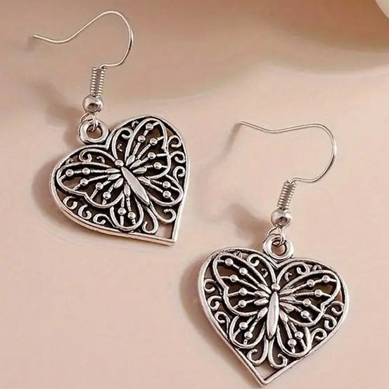 Sterling sølv vintage hjerte sommerfugl øreringe