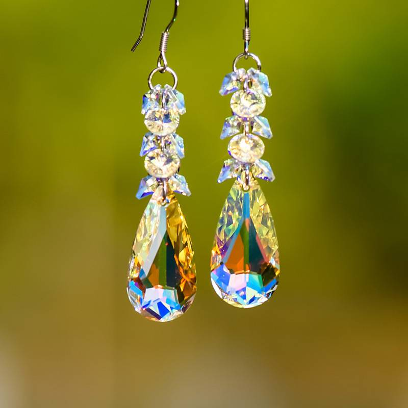 Vintage flerfarvede øreringe med krystalvedhæng