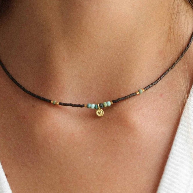 Vintage læderhalskæde med sten