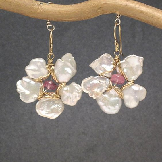 Vintage øreringe med hvid blomst