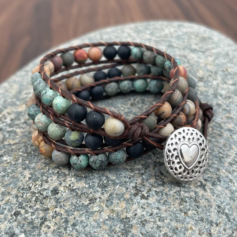 Vintagearmbånd med sten og hjerteformet sølvplade